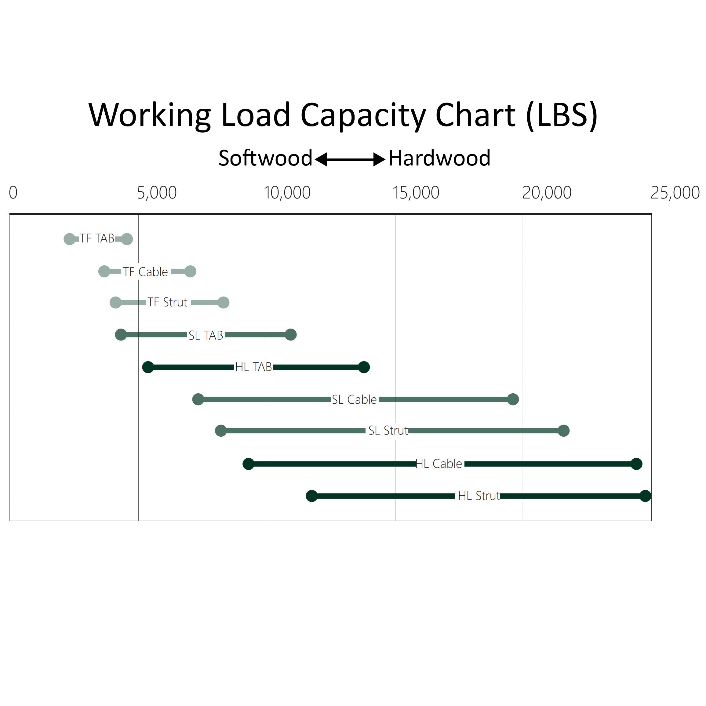 A properly installed SL TAB may support between 8,000 to 10,000 pounds of force, depending on the species of the tree(s).*