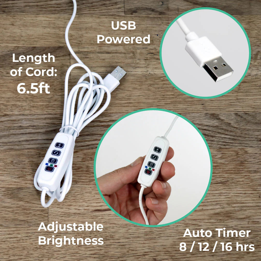 Assembled size: 4" x 5" x 5"H, plus grow light stake