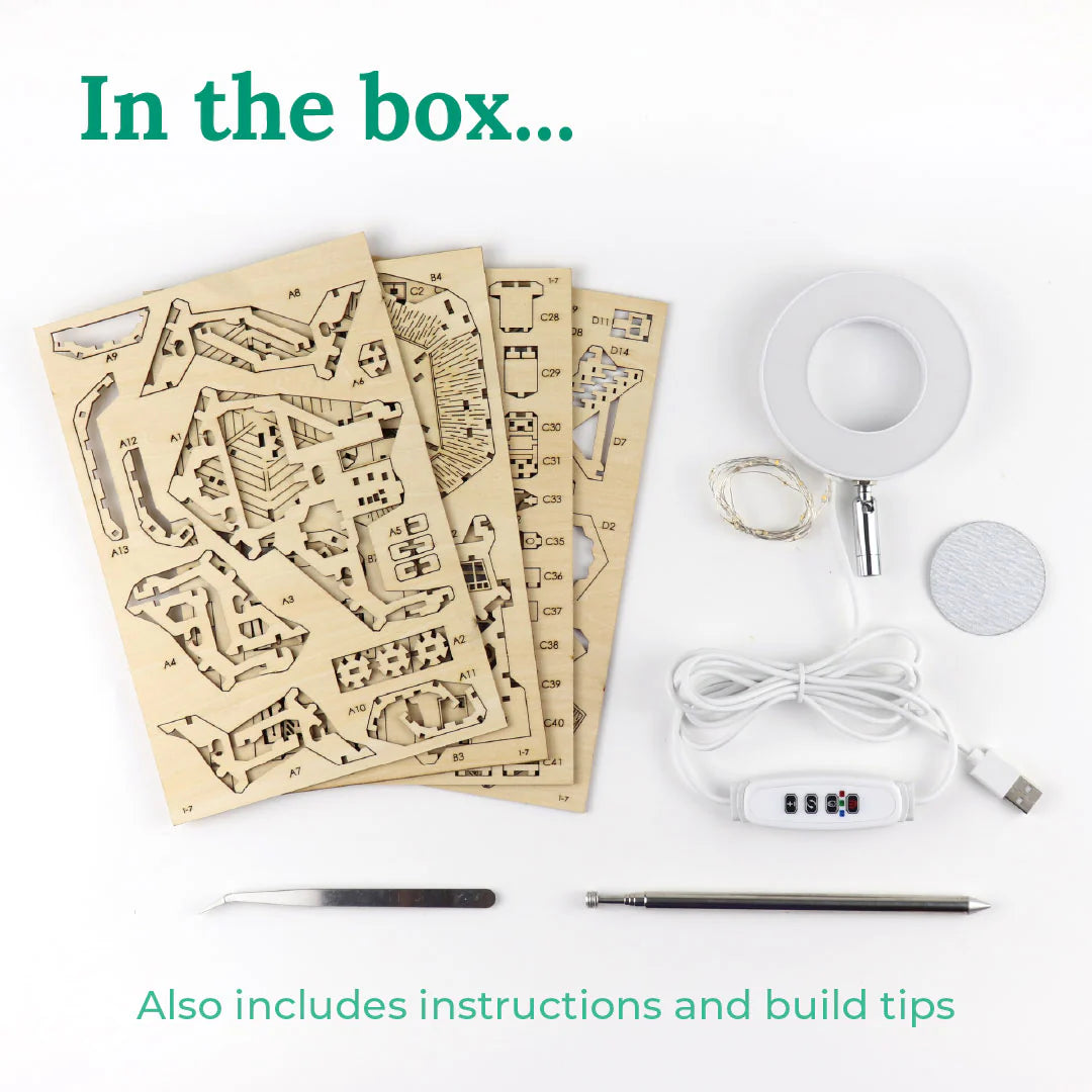 DIY wooden model kit with easy to follow instructions. Treehouse is fixed to grow light once built.