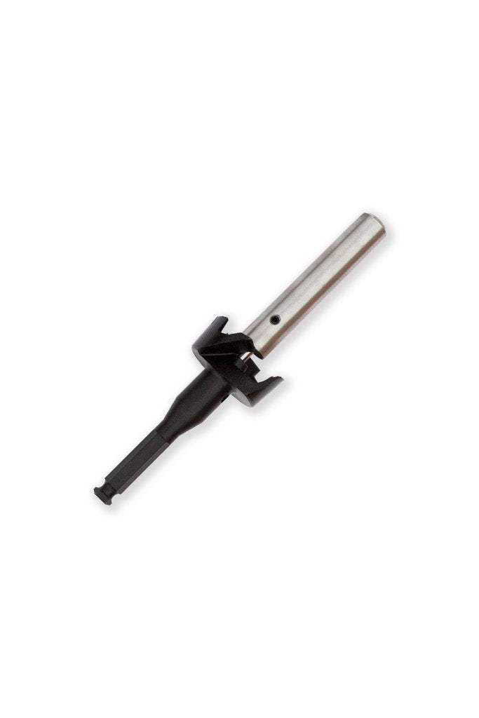 This custom made bit is used after a 3/4" diameter pilot hole is drilled into the host tree. The 3/4" pilot bit is used whenever a 1" lag receives a 2" boss.