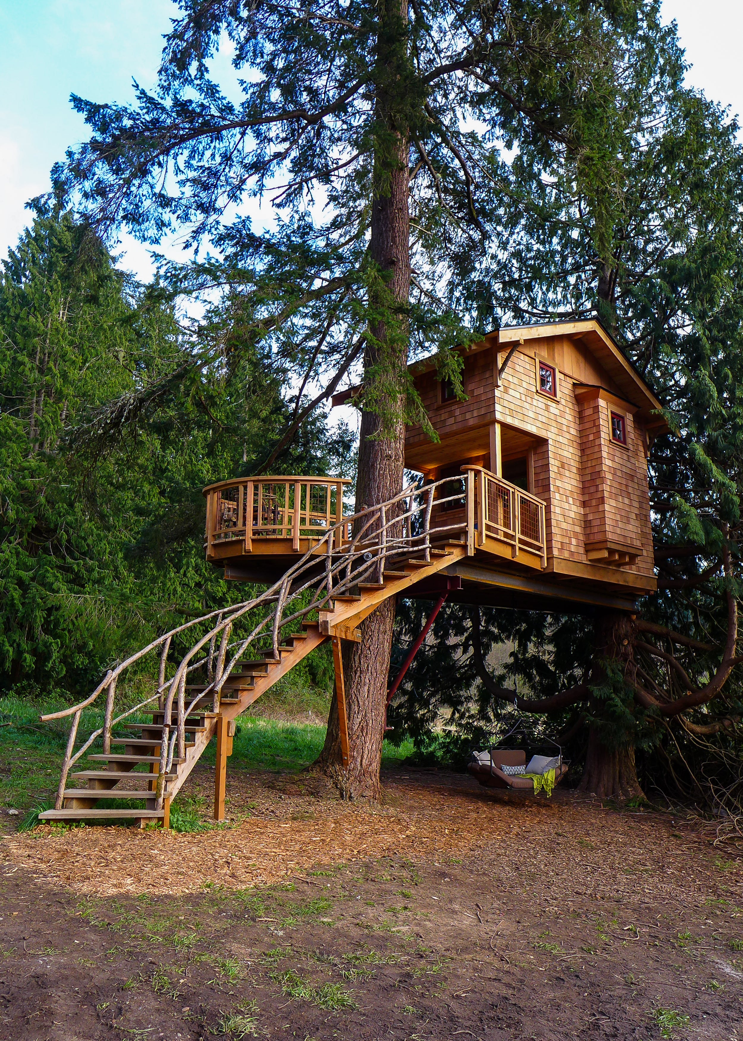 The key to a successful treehouse project is incorporating strong & healthy trees at least 8" in diameter and less than 24' apart.
